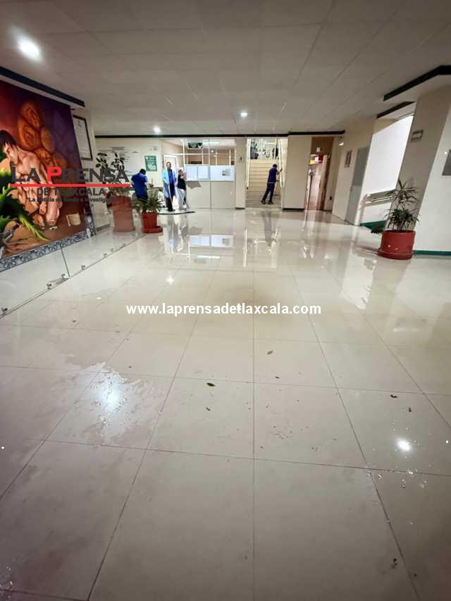 En algunas zonas de la capital tlaxcalteca la acumulación por escurrimientos pluviales desde partes altas, se acumularon en algunas vialidades al grado se superar el nivel de las banquetas y la capacidad del sistema de drenaje, atrapando vehículos y dejando varadas a los transeúntes, en otros puntos geográficos la concentración de hielo género; además de generar ambientes gélidos dignos de postales navideñas, provocaron el colapso de la barda de una institución educativa.