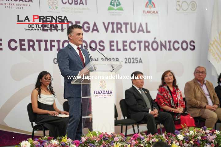 En multitudinaria ceremonia, el presidente municipal de Tlaxcala, Alfonso Sánchez García, apadrinó a la generación 2022–2025 del Colegio de Bachilleres de Tlaxcala (COBAT), en un acto sin precedentes en el estado en materia educativa, pues la gobernadora Lorena Cuéllar Cisneros encabezó la primera entrega simultánea y digital de certificados a 5 mil 200 jóvenes de los 24 planteles y cinco telebachilleratos que conforman el subsistema educativo.