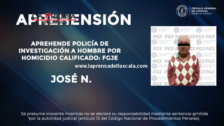 La Fiscalía General de Justicia del Estado (FGJE), a través de la Policía de Investigación, cumplimentó una orden de aprehensión en contra de José N., por su presunta participación en el delito de homicidio calificado, ocurrido en Chiautempan.