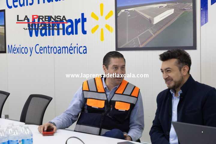 Huamantla, Tlax. – El presidente municipal de Huamantla, Salvador Santos Cedillo, acompañó al Secretario de Desarrollo Económico del Estado de Tlaxcala, Javier Marroquín Calderón en un recorrido por la obra del Centro de Distribución Walmart (CEDIS) que se construye en el municipio.