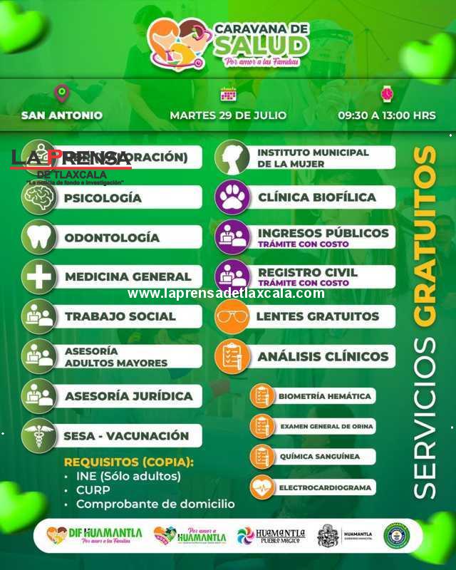 Huamantla, Tlax., 29 de julio de 2025. – Con el compromiso de llevar servicios médicos gratuitos y atención directa a quienes más lo necesitan, el Ayuntamiento de Huamantla y el Sistema Municipal DIF continúan recorriendo el municipio con la Caravana de Salud, que en esta ocasión llegará a la comunidad de San Antonio.