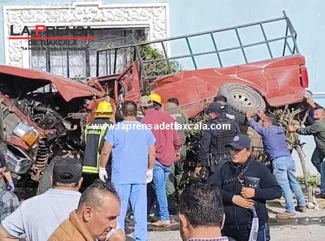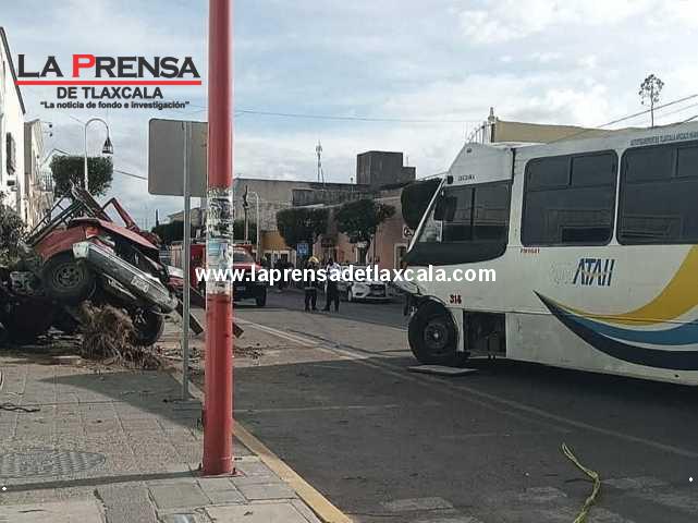 En Tlaxco prensa un ATHA a camioneta con ocupantes