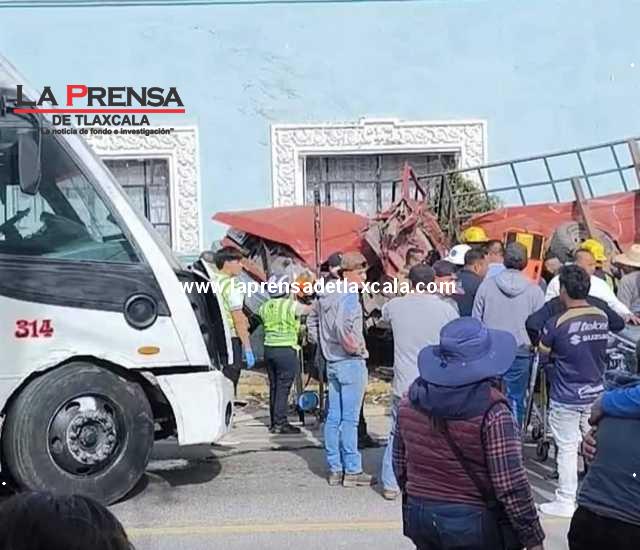 En Tlaxco prensa un ATHA a camioneta con ocupantes
