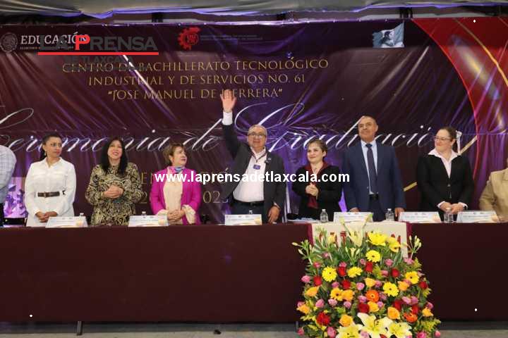En representación de la gobernadora, Lorena Cuéllar Cisneros; el secretario de Educación Pública del Estado, Homero Meneses Hernández, encabezó la ceremonia de graduación de alumnos del Centro de Bachillerato Tecnológico Industrial y de Servicios (Cbtis), número 61, de Huamantla.