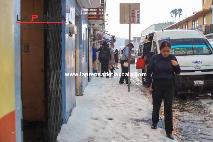 Este domingo, alrededor de las 3:00 de la tarde, una fuerte tormenta sorprendió a habitantes de la ciudad de Tlaxcala, dejando calles cubiertas de granizo en varias zonas de la capital.