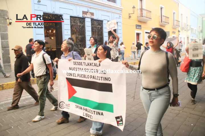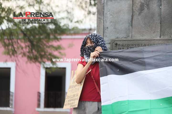 Este viernes, grupos civiles y activistas del Frente Anarquista de Trabajadores (FAT) de Tlaxcala realizaron una manifestación y pronunciamiento público en solidaridad con el pueblo palestino. expresaron su rechazo a la guerra en Gaza y condenaron la política exterior de Estados Unidos en el conflicto.