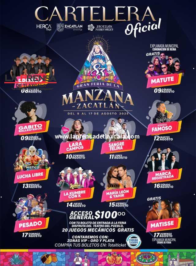 Este año, la cartelera artística de Huamantla incluye a figuras de talla internacional y con reconocimiento masivo, que han pisado los escenarios más grandes del país. Con nombres que compiten directamente con artistas presentados en ferias como las de Apizaco, Chiautempan o Texmelucan, Huamantla demuestra que es posible combinar calidad con sensibilidad social.