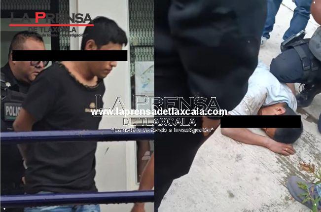 Cuaxomulco, Tlaxcala.— Este domingo 13 de julio, tres sujetos armados intentaron robar una unidad de transporte público de la ruta Apizaco-Cuaxomulco, agrediendo al conductor con un tubo de fierro en la cabeza. El hecho ocurrió por la tarde y generó una rápida reacción de los vecinos, quienes capturaron a uno de los presuntos delincuentes, mientras los otros dos huyeron hacia barrancas cercanas.