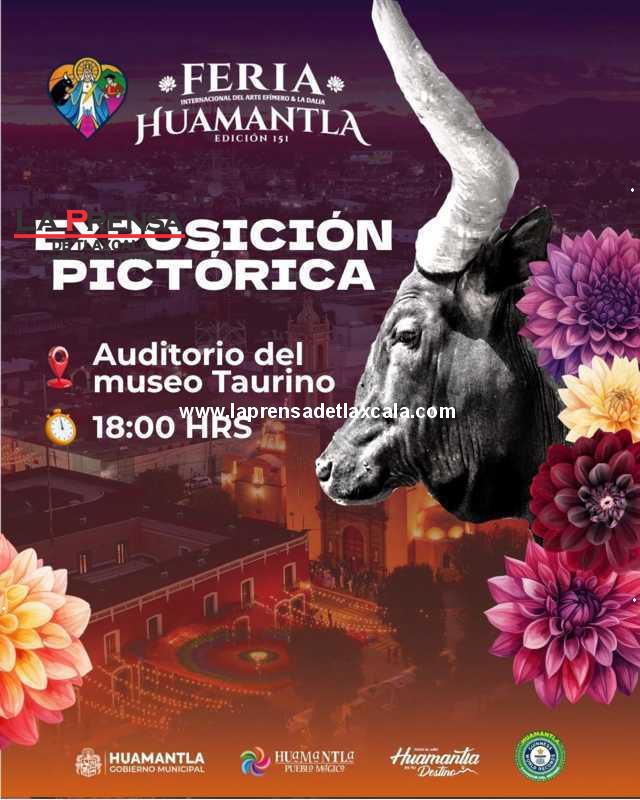 En el marco de las actividades culturales de la Feria Internacional del Arte Efímero y de la Dalia Huamantla 2025, el Gobierno Municipal de Huamantla extiende una cordial invitación a la ciudadanía para asistir a la inauguración de la exposición pictórica que se llevará a cabo este viernes 1 de agosto, en punto de las 18:00 horas, en el auditorio del Museo Taurino.