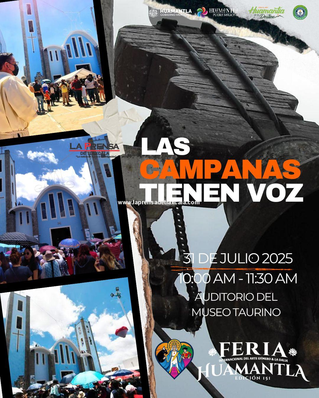 En el marco de la Feria Internacional del Arte Efímero y la Dalia 2025, el próximo jueves 31 de julio a las 10:00 de la mañana se llevará a cabo el conversatorio titulado “Las Campanas Tienen Voz”, en el auditorio del Museo Taurino de Huamantla.