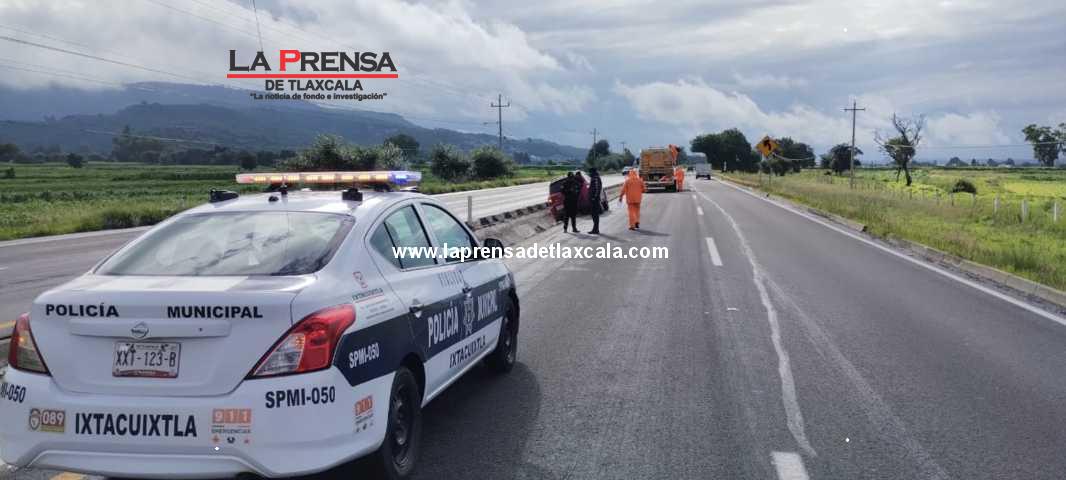 En la Autopista Texmelucan-Tlaxcala, km 14+900, sentido Tlaxcala, cerca de la entrada a San Antonio Tecoac, ocurrió un choque con solo daños materiales, ya que un vehículo rojo se fue a la cuneta. La Policía Municipal de Ixtacuixtla brinda apoyo.
