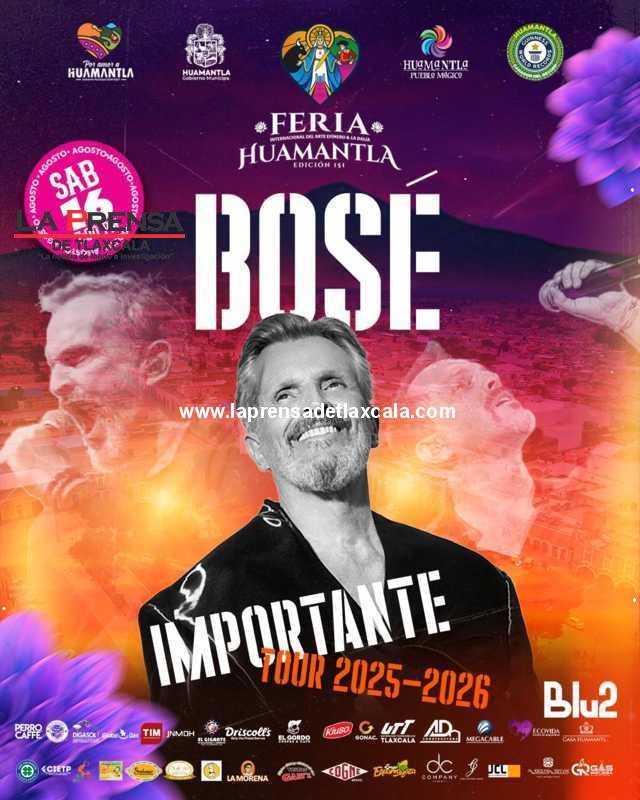 El Ayuntamiento de Huamantla, en el marco de la Feria Internacional del Arte Efímero y la Dalia 2025, anuncia con entusiasmo la esperada presentación del reconocido artista internacional Miguel Bosé, quien ofrecerá un espectáculo inolvidable para todas y todos los asistentes.