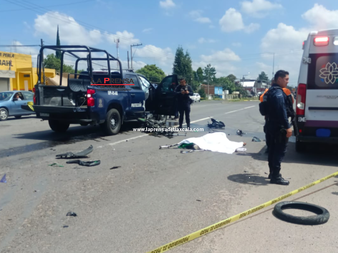 Los hechos se registraron a escasos metros del establecimiento AutoZone, cuando la unidad oficial SPF-81-A8, según testigos presenciales, circulaba a exceso de velocidad y de forma temeraria, sin respetar límites ni condiciones del camino. El resultado: una motocicleta completamente destrozada y un cuerpo sin vida tendido sobre el asfalto.