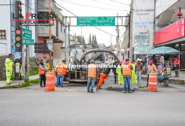 De esta manera, a través del Programa Municipal de Bacheo, se realizaron trabajos en el centro de la ciudad, San Gabriel Cuauhtla y Loma Bonita, donde se registra una alta afluencia vehicular y peatonal.