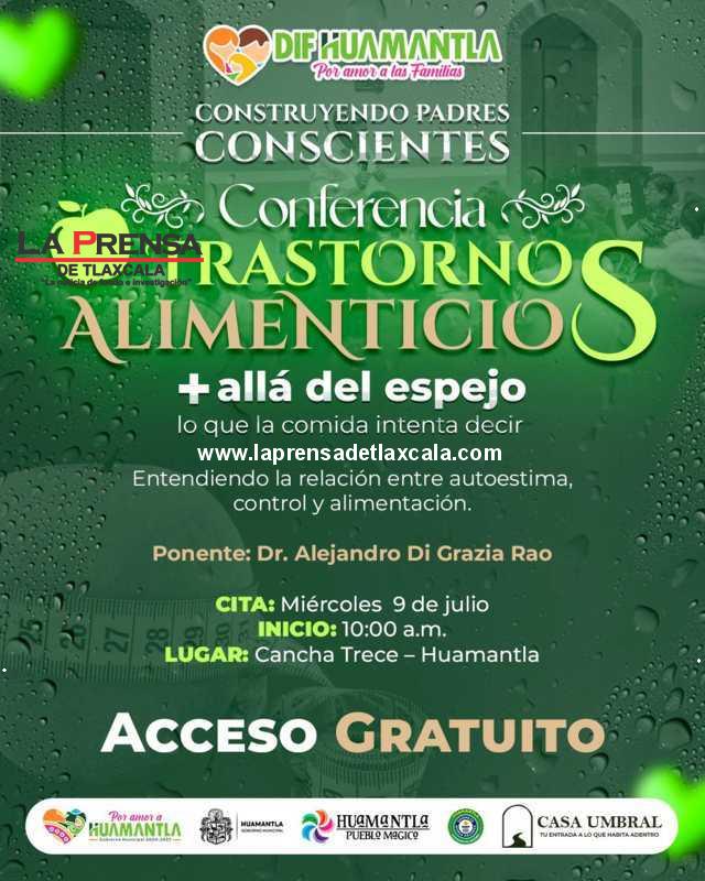 Como parte del programa “Construyendo Padres Conscientes”, el Sistema Municipal DIF Huamantla invita a madres, padres, tutores y público en general a la conferencia “Trastornos alimenticios: Más allá del espejo, lo que la comida intenta decir”, impartida por el Dr. Alejandro Di Grazia Rao, especialista en salud emocional.