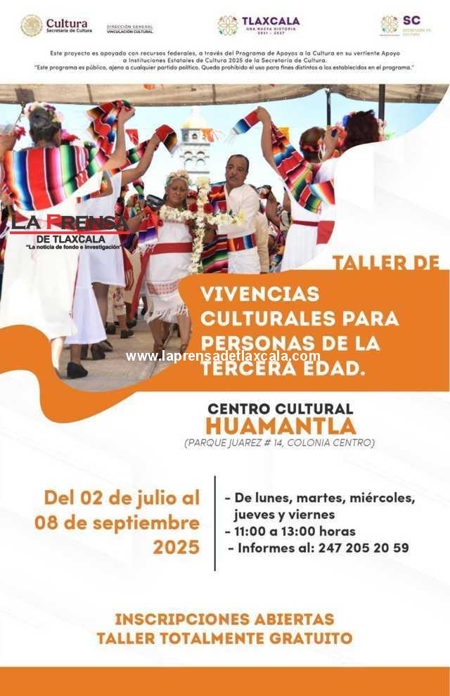 Además, en Contla se realizará el taller Elaboración del Rebozo Tradicional y Cantos en Náhuatl “Zitlaltzitzi”; en Chiautempan Técnicas Artesanales de Estampado Textil en Tela de Algodón; en Huamantla: Vivencias Culturales para Personas de la Tercera Edad y en Papalotla Creación de Libros con Ilustraciones de Semillas