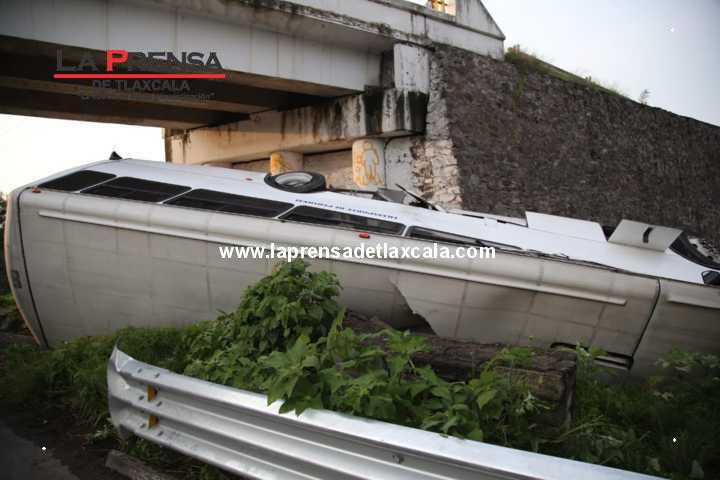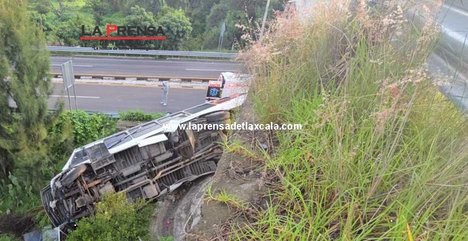 Panotla, Tlaxcala.— Este jueves, una unidad de transporte de personal volcó en la autopista hacia San Martín Texmelucan, a la altura de Santa Cruz Techachalco, en el municipio de Panotla. El accidente ocurrió en las primeras horas de la mañana, dejando un saldo de cinco personas con lesiones leves.