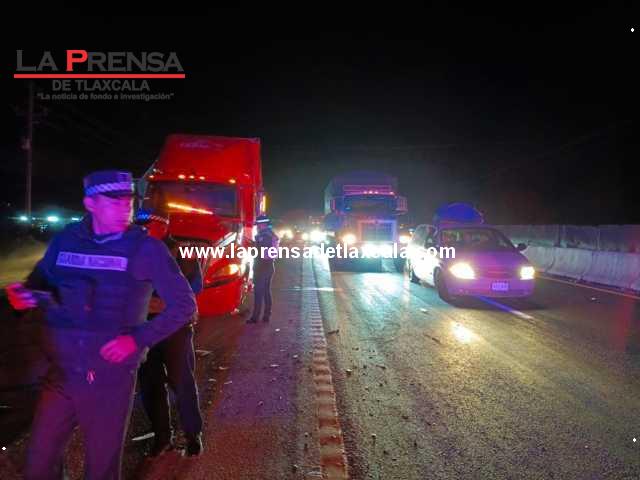 Al arribar al lugar, se localizaron dos unidades involucradas: un vehículo de carga pesada y un automóvil particular. Personal de Protección Civil realizó la valoración correspondiente a un masculino que presentaba lesiones, siendo estabilizado y trasladado al Hospital IMSS Bienestar Huamantla para su atención médica.