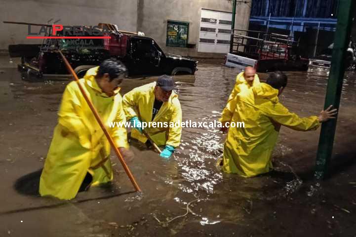 Brigada de contención y reacción del Ayuntamiento de Tlaxcala atiende afectaciones tras fuerte tormenta