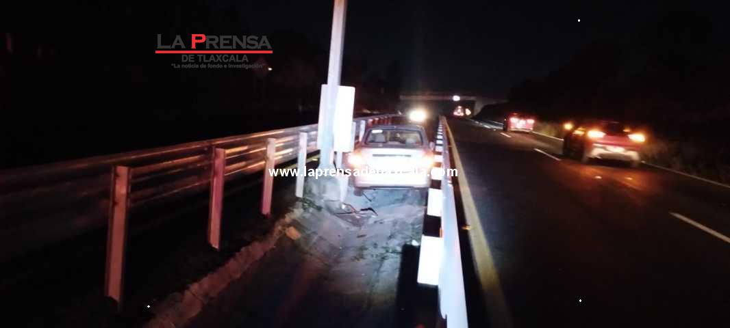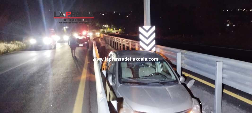 Este 2 de agosto de 2025, a las 21:56, un Nissan Tiida chocó en el km 28+300, zona Tizatlán. El vehículo quedó atrapado entre las barras de contención, con solo daños materiales.
