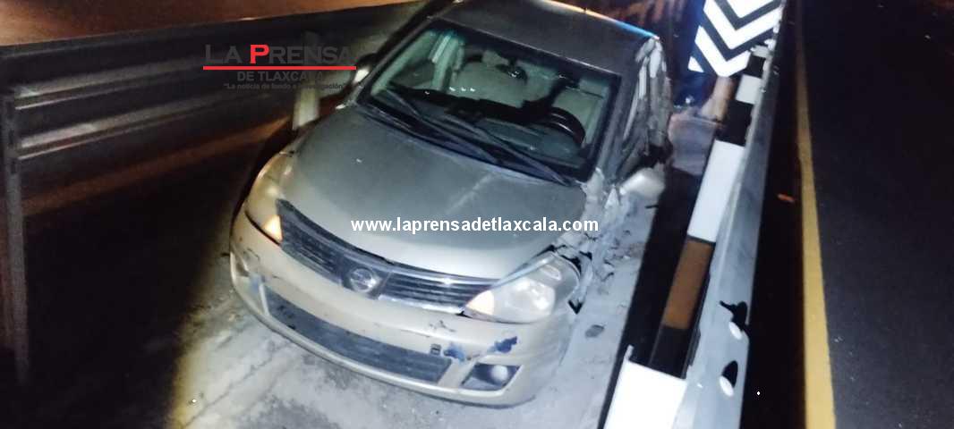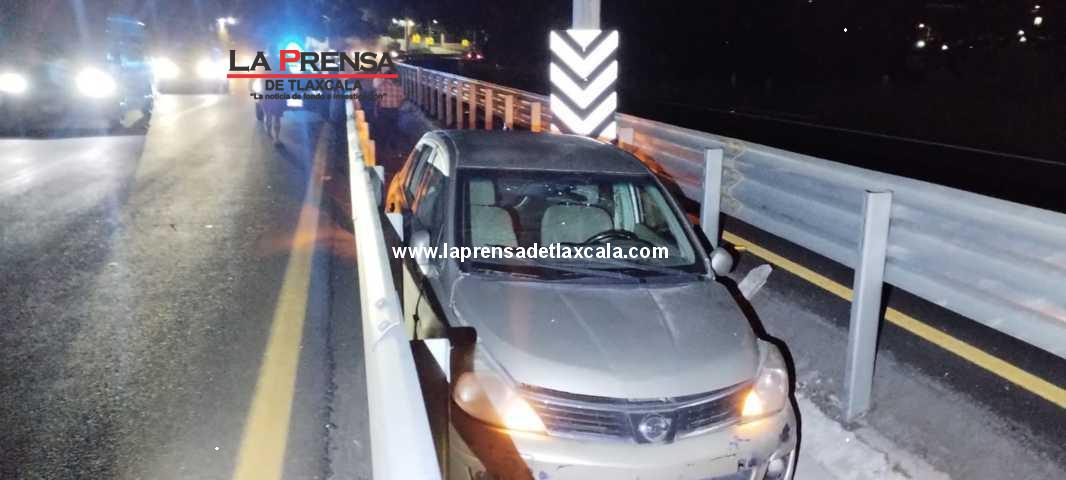 Este 2 de agosto de 2025, a las 21:56, un Nissan Tiida chocó en el km 28+300, zona Tizatlán. El vehículo quedó atrapado entre las barras de contención, con solo daños materiales.