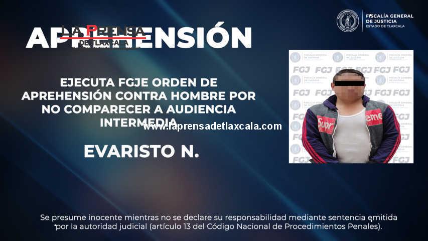 Elementos de la Policía de Investigación de la Fiscalía General de Justicia del Estado (FGJE) ejecutaron una orden de aprehensión en contra de Evaristo N., por su incomparecencia a una audiencia en el proceso que enfrenta por el delito de robo de ganado.
