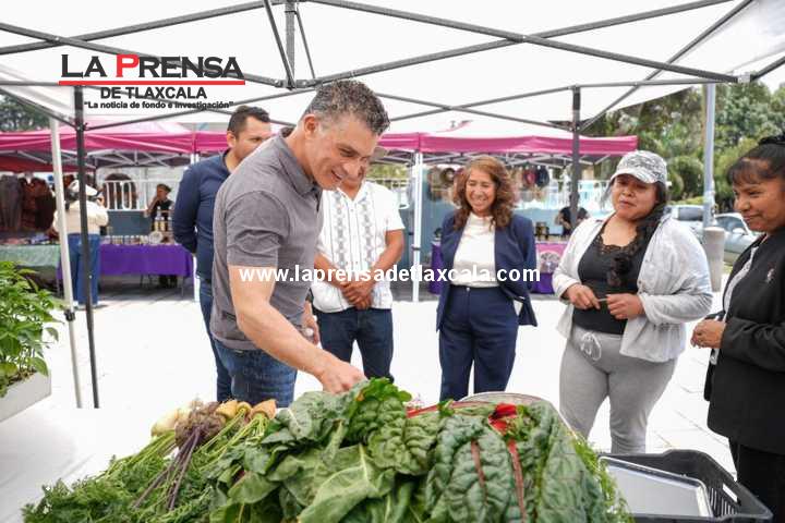 Durante su visita, el alcalde también recorrió el Mercado Social que su gobierno organiza cada quince días en la explanada de dicha comunidad, donde artesanos y productores locales ofrecen artesanías y alimentos orgánicos.