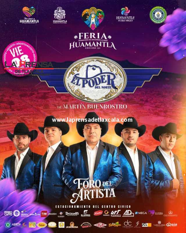El Gobierno Municipal de Huamantla informa que este viernes 8 de agosto se llevará a cabo la presentación estelar de El Poder del Norte en el Foro del Artista, como parte de la extensa cartelera musical de la Feria de Huamantla 2025 .