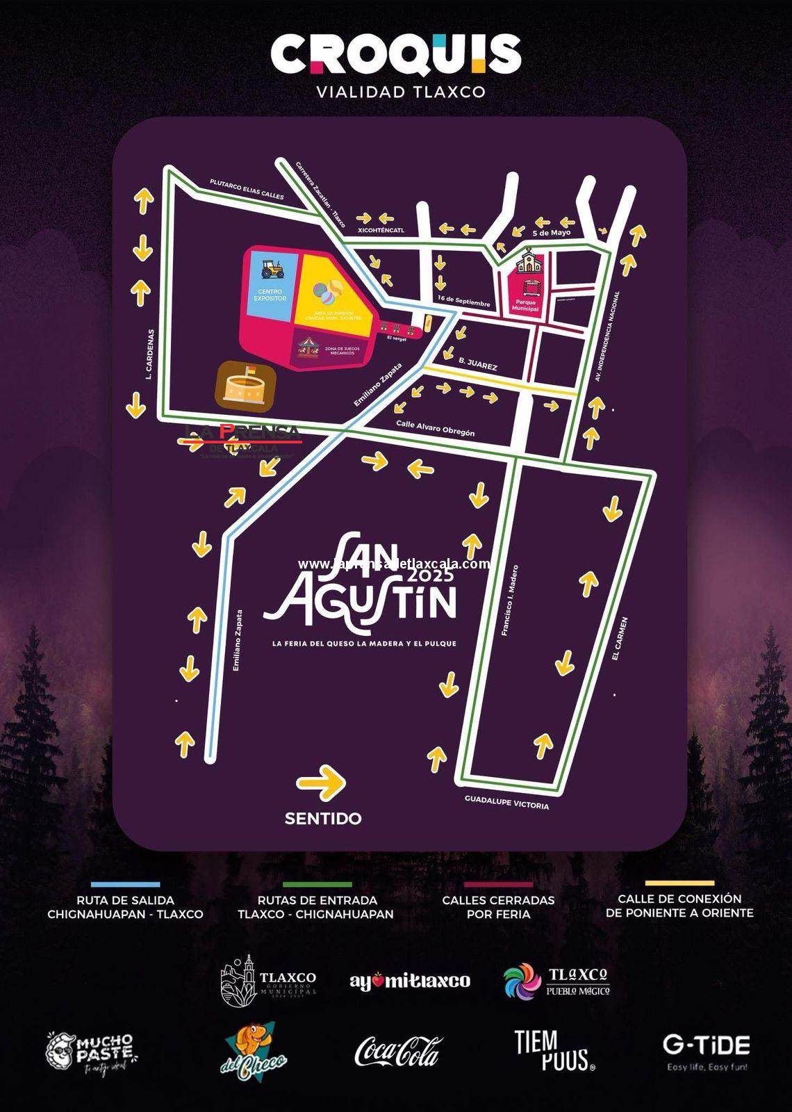 El H. Ayuntamiento de Tlaxco dio a conocer el croquis oficial de vialidad con motivo de la Feria de San Agustín 2025, a fin de que visitantes y pobladores disfruten de la fiesta con seguridad y sin contratiempos.