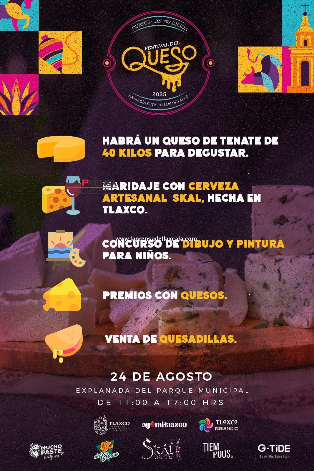 Este 24 de agosto de 2025 La Feria de San Agustín Tlaxco se alista para vivir una de sus jornadas más emblemáticas con la realización del Festival del Queso 2025, en la Explanada del Parque Municipal, de 11:00 a 17:00 horas.