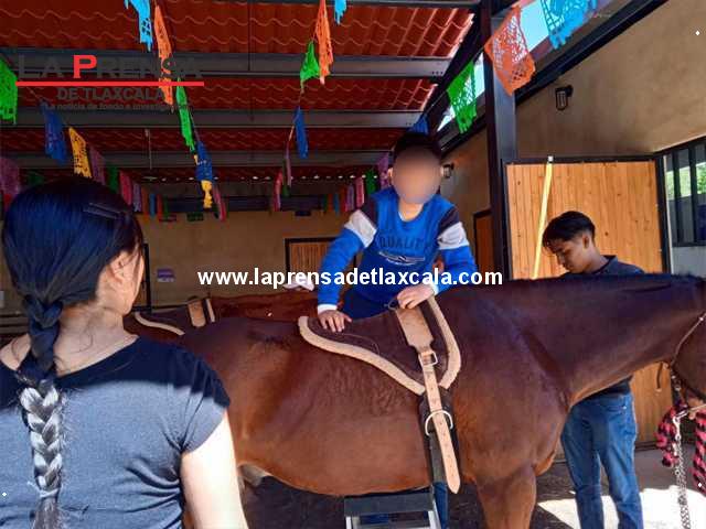 Cómo cada martes, las y los menores del área de Psicopedagogía del Sistema Municipal para el Desarrollo Integral de la Familia (SMDIF) Huamantla participaron en su sesión semanal de equinoterapia, llevada a cabo en el CECAPDIF.