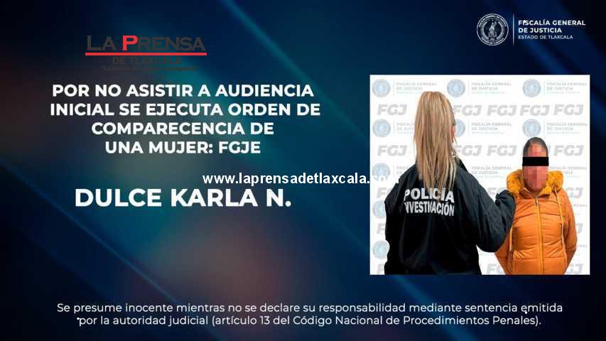 Tras realizar las indagatorias correspondientes, la Policía de Investigación llevó a cabo labores de búsqueda y localizó a la mujer en el municipio de Apetatitlán, donde fue debidamente notificada de la orden de comparecencia para la audiencia inicial.