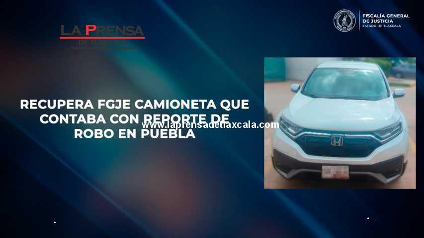 Agentes de la Policía de Investigación, adscritos a la Fiscalía Especializada en la Investigación y Combate al Delito de Robo de Vehículos y Relacionados con la Seguridad Vial de la Fiscalía General de Justicia del Estado (FGJE), recuperaron en Apizaco una camioneta, la cual contaba con reporte de robo en el estado de Puebla.
