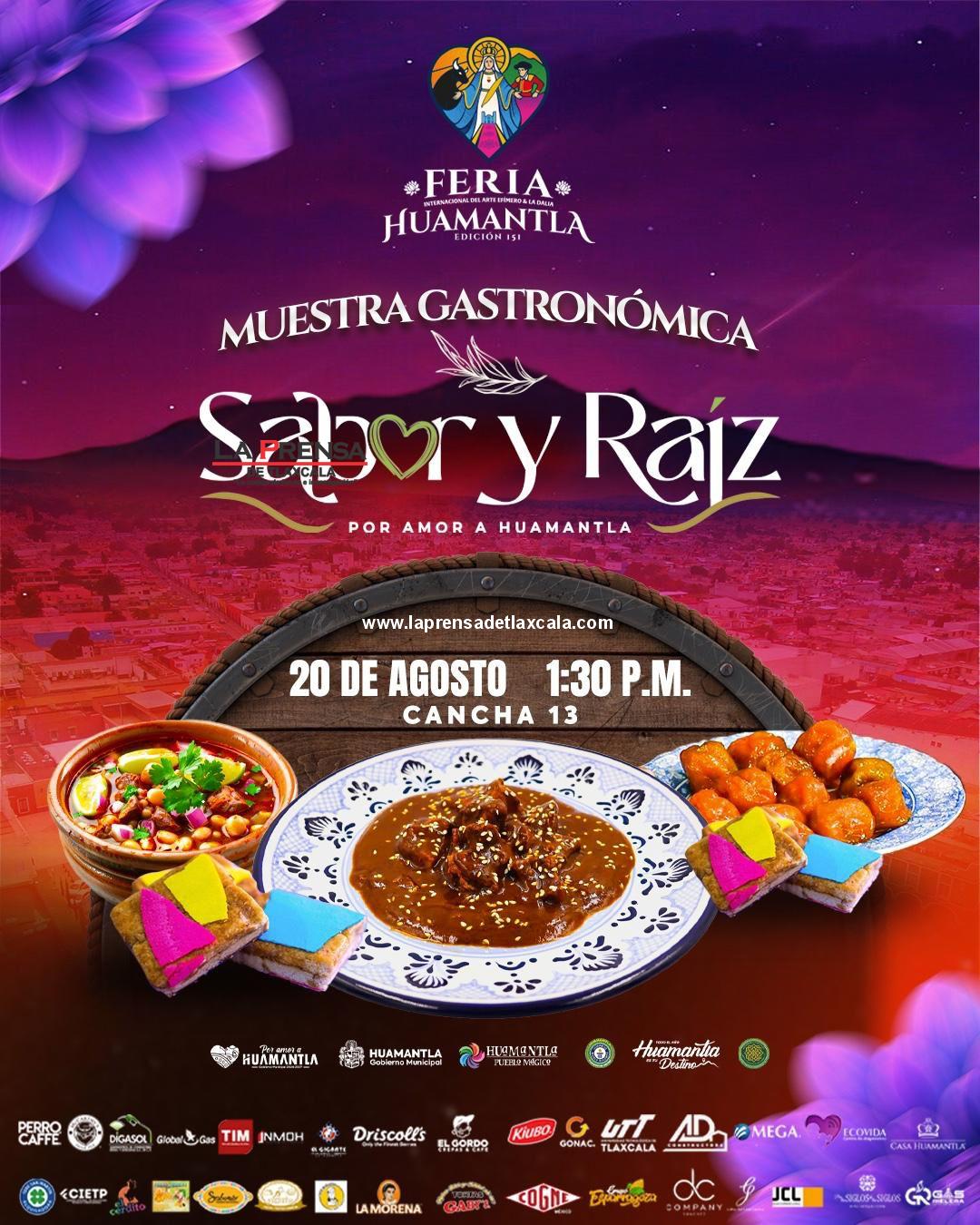 Como parte de las actividades culturales y tradicionales de la Feria Internacional del Arte Efímero y de la Dalia Huamantla 2025, el próximo martes 20 de agosto se llevará a cabo la muestra gastronómica “Sabor y Raíz”, una experiencia que reúne lo mejor de la cocina huamantleca y sus tradiciones culinarias.