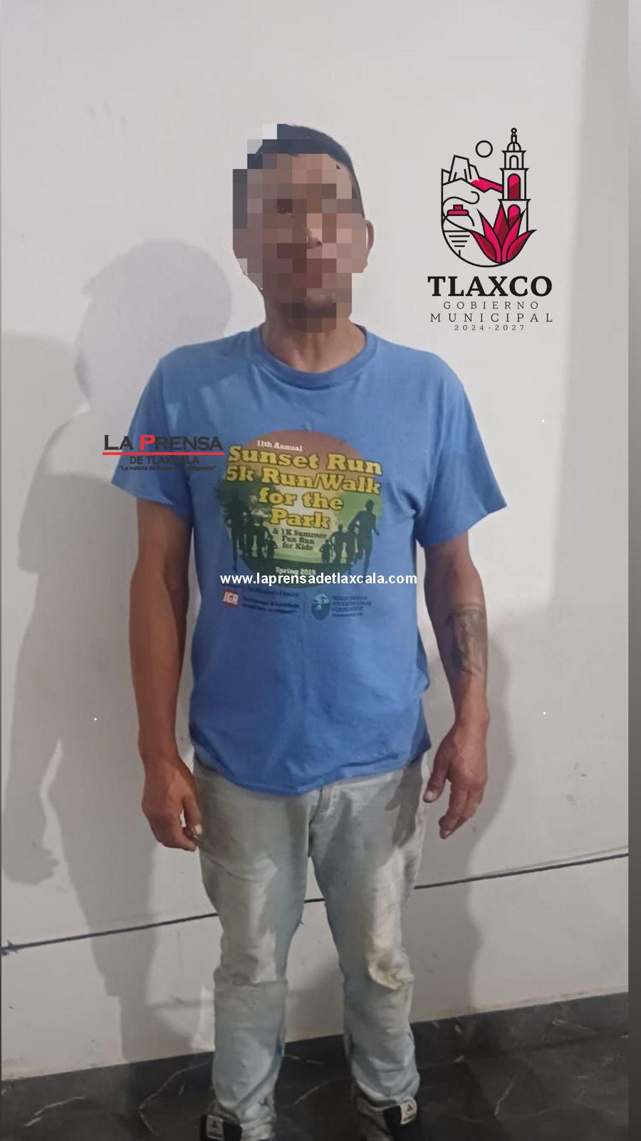 Elementos de la Dirección de Seguridad Ciudadana, Vialidad y Protección Civil de Tlaxco realizaron la detención de un masculino identificado como Porfirio N. tras un reporte recibido al número de emergencias 911 en la Colonia El Sabinal.