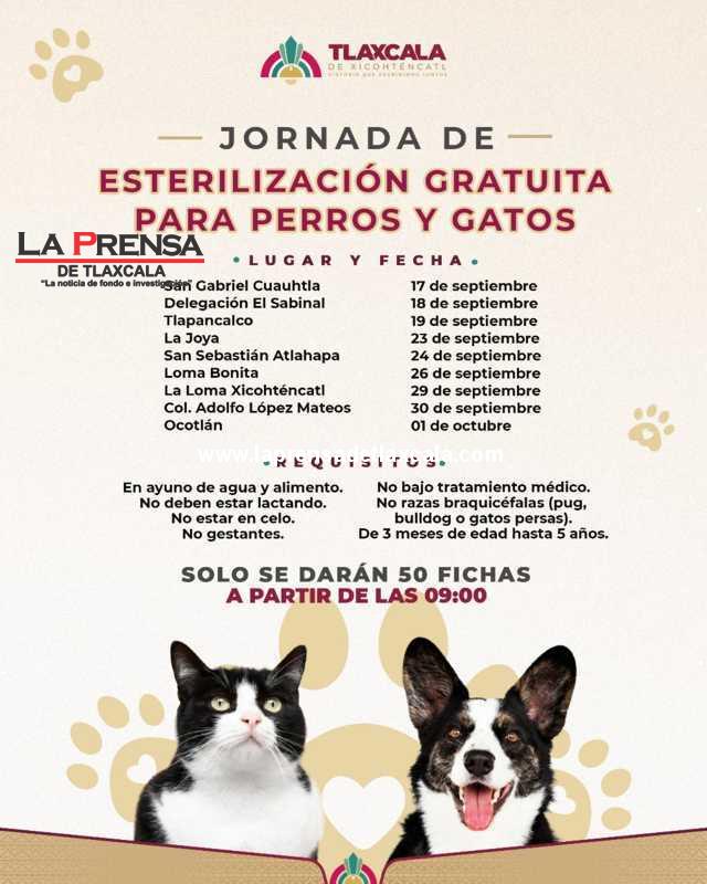 Con la ampliación de su campaña de esterilización canina y felina, el Ayuntamiento de Tlaxcala y la Secretaría de Salud (SESA) facilitarán a más familias de la capital el acceso a este servicio en favor del bienestar de los animales y de la salud pública.