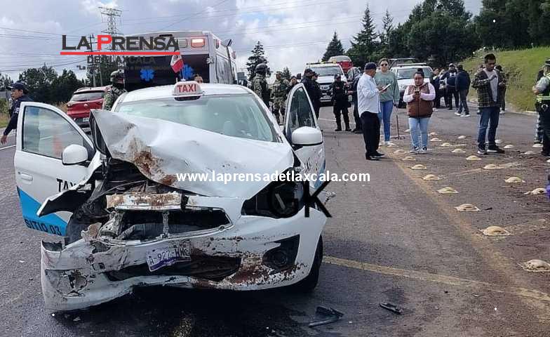 A la altura de Villa de las Flores en la Apizaco-Tlaxco colisionan frontalmente taxi y particular
