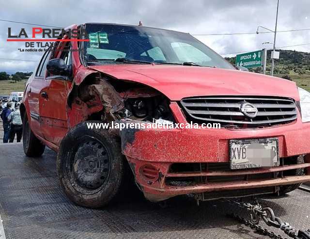 A la altura de Villa de las Flores en la Apizaco-Tlaxco colisionan frontalmente taxi y particular