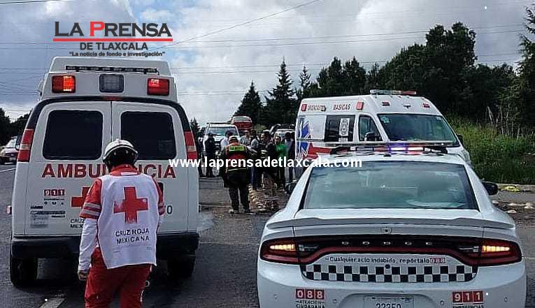 Poco después de las 10:00 horas a la altura del entronque a la cabecera municipal de Atlangatepec en Villa de las Flores, por una presunta invasión de carril el Chevrolet Aveo blanco con placas A-922-WWC y balizado de TAXI del sitio 3 de Apizaco chocó de forma frontal con el Nissan Platina rojo placas XBB -terminación- B locales anteriores, imprudencia que causó posible fractura en extremidades superior e inferior a una adulta mayor, traumatismo cráneo encefálico a un hombre y dejo policontundidad a una mujer.