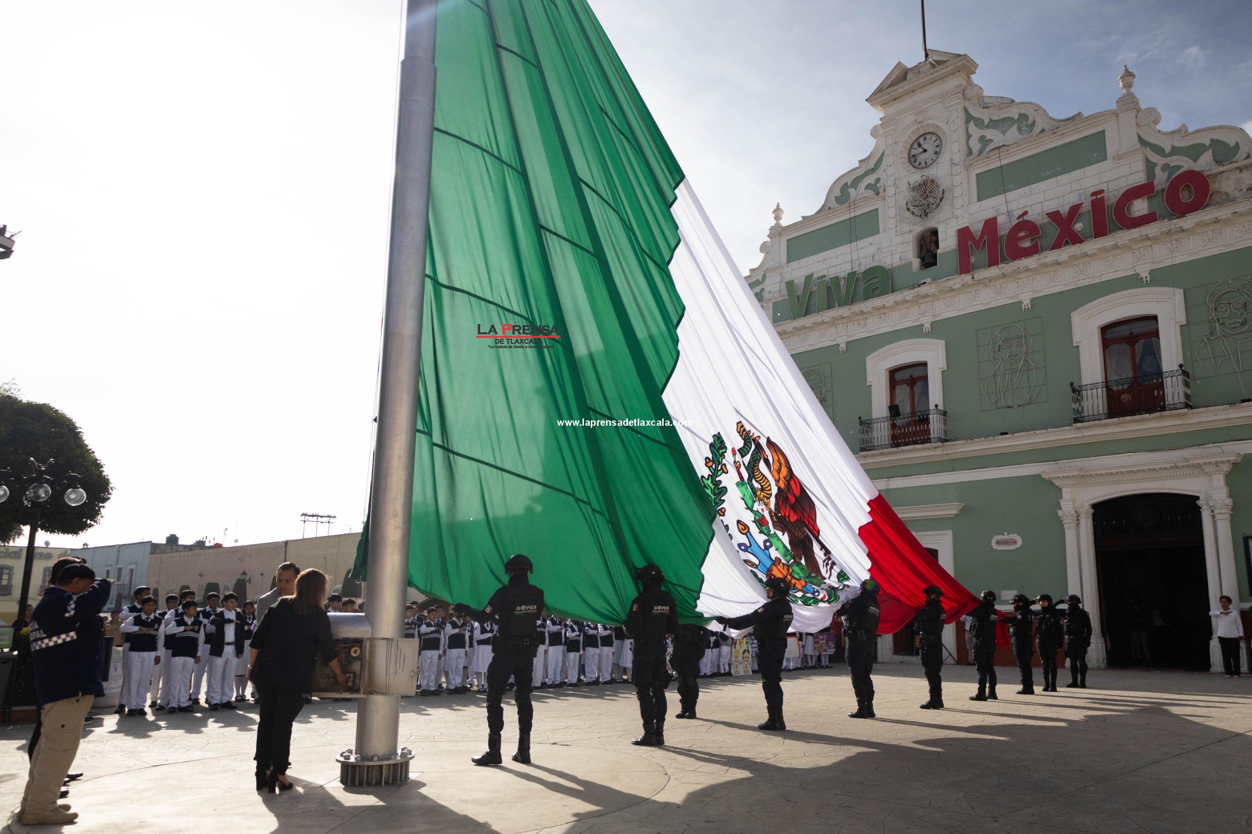 En un acto de civismo y respeto a nuestra identidad nacional, este día se llevaron a cabo los honores a los símbolos patrios e izamiento de la Bandera Nacional en la explanada municipal de Huamantla, con la destacada participación del Instituto Amado Nervo y de la comunidad del Pueblo de la Cruz.