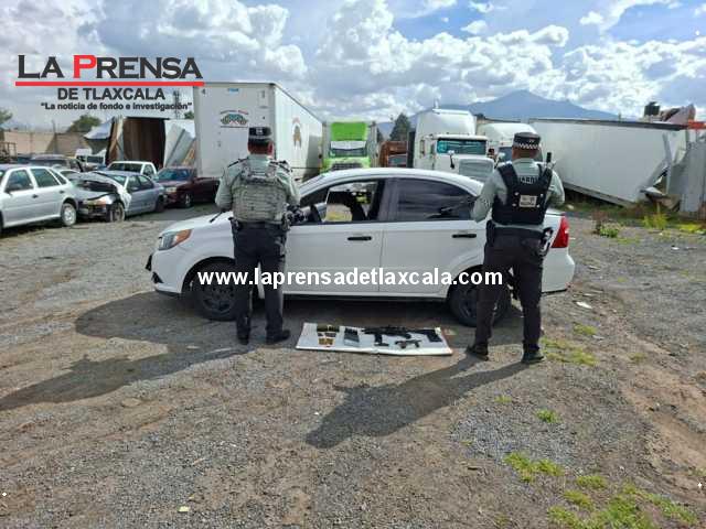 En un operativo, se aseguró un *Chevrolet Aveo blanco* con un *fusil de alto calibre, una **pistola, un **revólver pequeño, **decenas de cartuchos útiles* y un *inhibidor de señal.