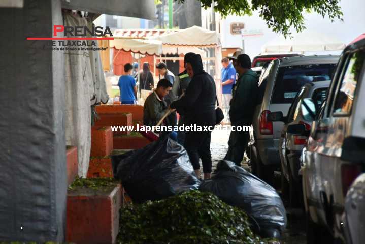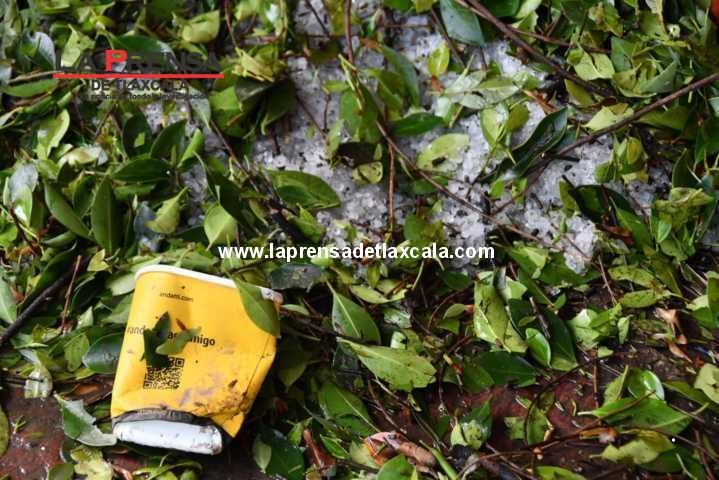 Tras la fuerte granizada registrada la tarde de ayer, la capital tlaxcalteca presentó diversas afectaciones en sus principales calles. El hielo acumulado provocó la caída de ramas y hojas que obstruyeron el paso de transeúntes en banquetas, principalmente en la zona frente a la Secretaría de Gobernación.