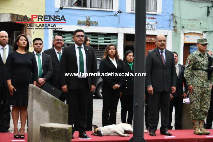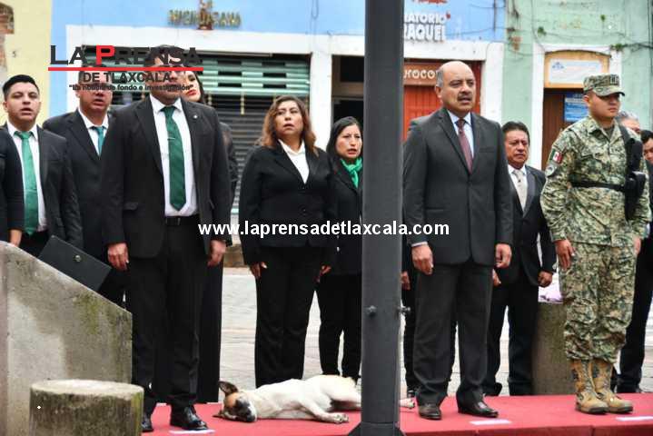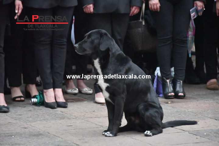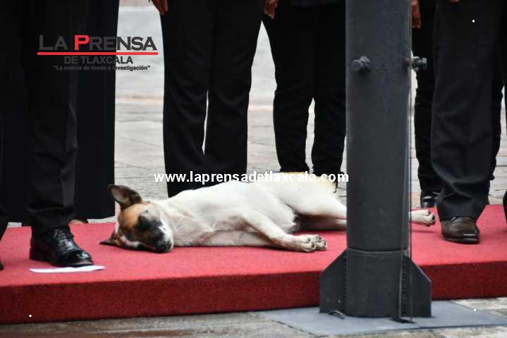 Durante el homenaje de esta mañana, un lomito acaparó la atención al colocarse en el pódium junto con las autoridades encargadas del izamiento de la bandera. Su presencia causó ternura entre los asistentes, quienes no dudaron en fotografiar el momento.