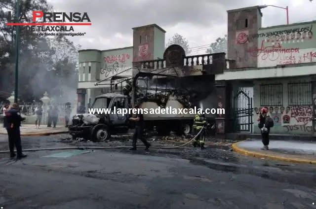 La protesta, que inició alrededor de las 13:00 horas, derivó en un enfrentamiento simbólico con la institución castrense: estudiantes encapuchados estrellaron un camión contra la puerta principal del complejo militar y posteriormente lo incendiaron. El acceso estaba resguardado con vallas metálicas, alambre de púas y elementos del Ejército.
