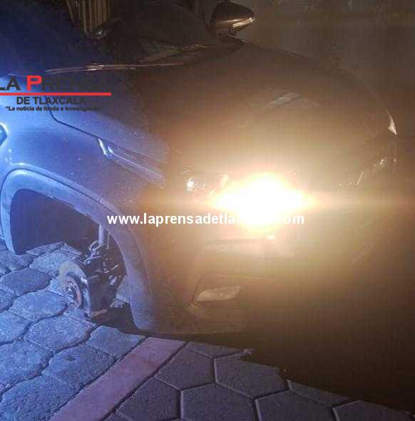 En otro hecho, en la calle 2 Poniente de Acuitlapilco, un automóvil Versa gris perdió sus cuatro neumáticos mientras estaba estacionado fuera del domicilio de su propietaria. Los delincuentes también dejaron un vidrio roto, presuntamente como parte del robo. Más tarde, en la calle Del Bosque, cerca de Casas GEO, un Aveo blanco fue despojado de dos llantas, una delantera y una trasera, sin que cámaras o testigos proporcionaran información útil.