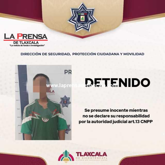 Elementos de la Policía Municipal de Tlaxcala detuvieron a un hombre señalado por una mujer como el presunto responsable de intentar arrebatarle su bolso en el estacionamiento de un centro comercial, aparentemente bajo los efectos de sustancias tóxicas.
