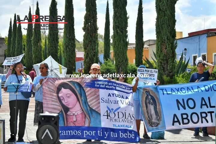 Integrantes de una organización religiosa se manifestaron este miércoles frente al Congreso del Estado para llevar a cabo una jornada de oración con motivo del arranque de la campaña “40 días por el fin del aborto”.