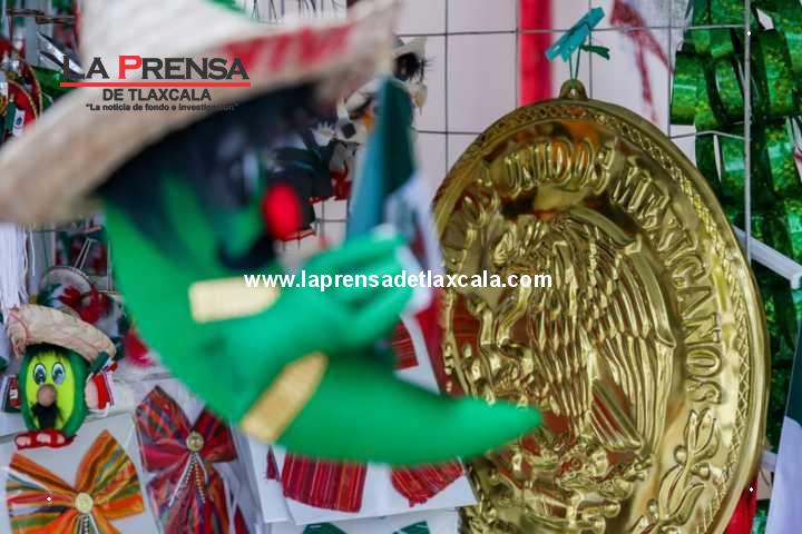 Para conmemorar las fiestas patrias en Tlaxcala, algunos vendedores de temporada han comenzado a ofrecer sus productos en las inmediaciones del mercado municipal Emilio Sánchez Piedras, donde los compradores pueden adquirir desde un pin, hasta un sombrero.