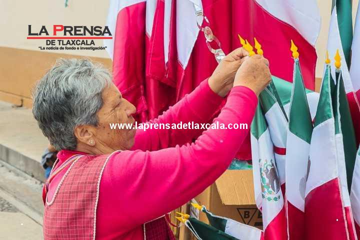 Para conmemorar las fiestas patrias en Tlaxcala, algunos vendedores de temporada han comenzado a ofrecer sus productos en las inmediaciones del mercado municipal Emilio Sánchez Piedras, donde los compradores pueden adquirir desde un pin, hasta un sombrero.