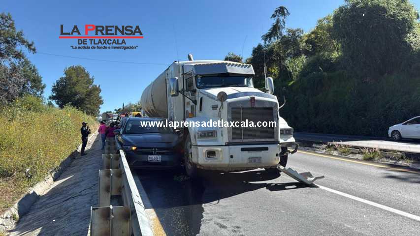 Tlaxcala, Tlax., 15 de octubre de 2025– Un accidente automovilístico entre un tráiler y un vehículo particular tipo Dodge, color blanco, ha provocado un fuerte congestionamiento vial en la carretera Tlaxcala-Apizaco, con dirección hacia la capital de Tlaxcala. El incidente ocurrió a la altura del kilómetro 24+300, a la altura de Ocotelulco, Totolac.